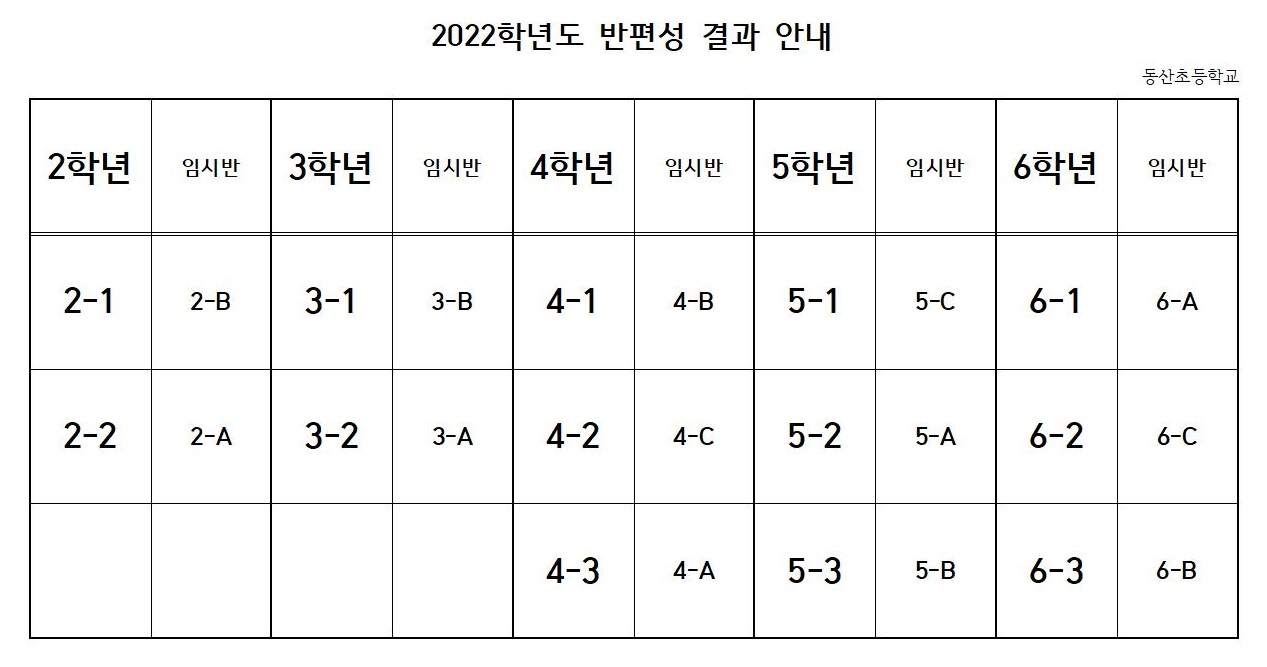 2022학년도 반편성 결과 안내(교실 배치도 포함)